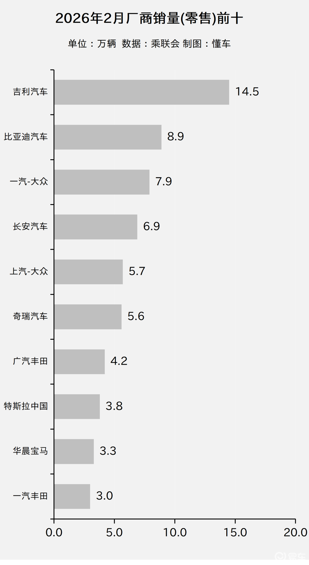 *以零售量排名,“2026年2月厂商销量(零售)前十榜”放在文章最后,只想看排名可以直接滑到文章底部。