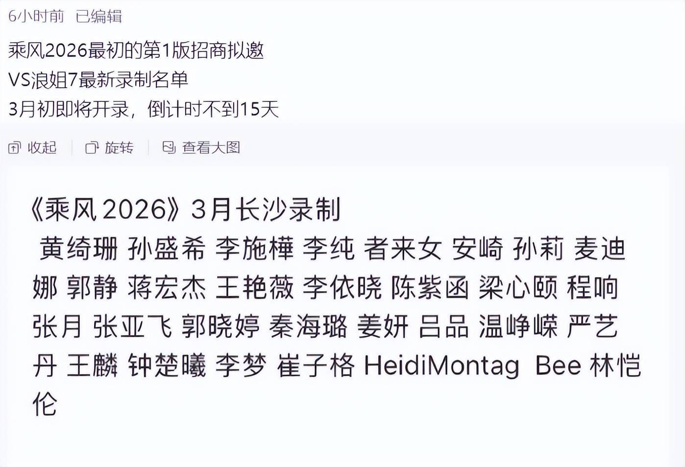 据爆料,《乘风2026》将于3月初开始录制,而在这个时候传出的名单,其实可信度是最高的,接下来,我们一起看一看: